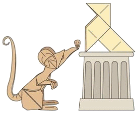 Le papier a été inventé en Chine vers 105 après JC. Au cours du septième siècle, un maître coréen de la fabrication du papier a introduit le papier à la cour japonaise. Le Prince japonais Shotoku a été tellement impressionné qu’il a planté des forêts spécifiquement pour produire un papier d’origami de meilleure qualité. A cette époque, le papier était très rare et cher et utilisé uniquement par les riches. Il était principalement utilisé pour les cérémonies shinto, avec des modèles connus uniquement des prêtres. Ce premier origami était abstrait et symbolique. Des siècles plus tard, le papier est devenu plus courant et moins cher à produire. L’origami a commencé à être utilisé pour le divertissement. Les modèles figurés à gauche, dont la célèbre grue, symbole de la paix, ont probablement 1000 ans, mais jusqu’au XXe siècle, il n’y avait que quelques centaines de modèles, tous très simples et conçus spécialement pour les enfants.